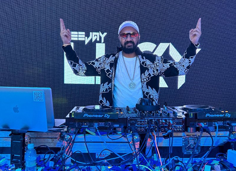 From private celebrations and grand weddings to large-scale concerts and corporate events, DJ Lucky has consistently set dance floors ablaze. His friendly persona, interactive stage presence, and ability to read and respond to crowd energy make every show engaging and memorable.